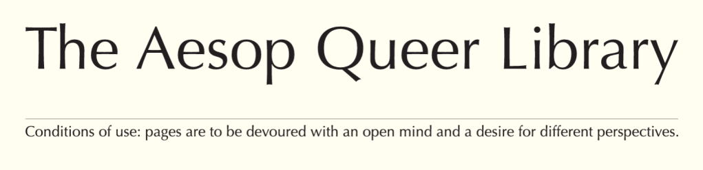 7 February – 3 March. I’m deeply honoured that Moon Wrasse has been curated as part of the 2024 Aesop Queer Library. This beautiful project aims to redress gender and sexuality based inequality via the amplification and sharing of contemporary queer literature. The shelves of Aesop QV, Aesop Bondi Junction and Aesop Ponsonby have been stocked with titles by LGBTQIA+ authors to discover and discuss: each visitor is invited to take home a complimentary book of their choice. The Aesop Queer Library is open at Aesop QV in Melbourne from 7-11 February, Aesop Ponsonby in Auckland from 16-18 February and Aesop Bondi Junction in Sydney from 28 February – 3 March, coinciding with Mardi Gras weekend. Details and downloadable reading lists here.